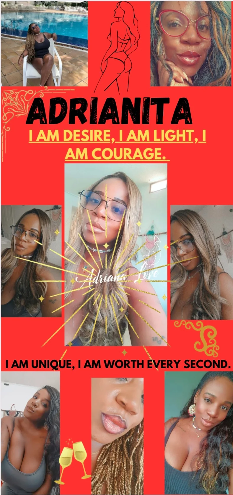 Hello, it's me, Adrianita! I am a super happy and spontaneous Colombian, I love animals, travel, good books, have fun and spend time with my friends and family, I love feeling beautiful and enjoying nature and beach; I am looking for any time and place to feel very sensual and desired, I love that they enjoy my beautiful color of my soft and bright chocolate skin. I would like you to join my life more private and have great passionate and fun moments together.
